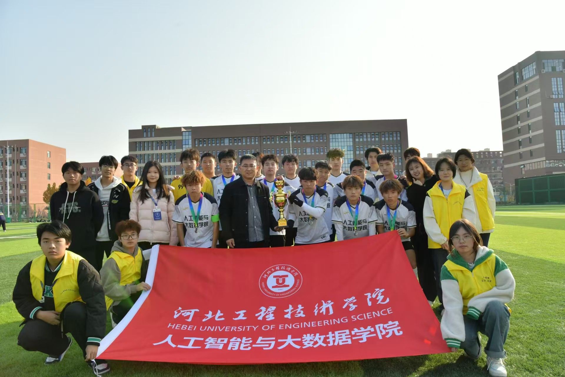 2024年11月22日,河北工程学院第四届“学院杯”收官,其中土木与建筑学院足球队以 5 战全胜的成绩,夺得冠军。