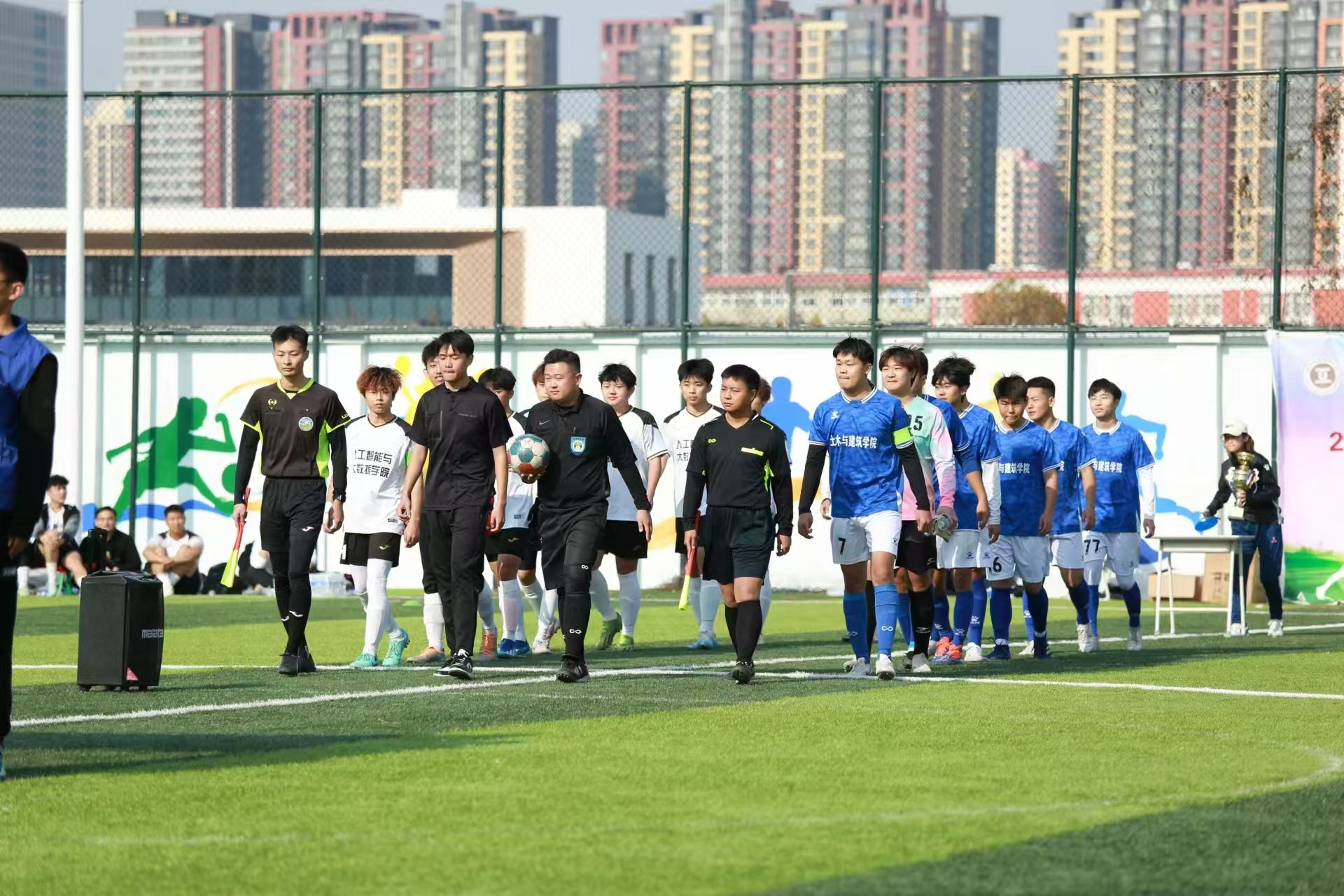 最终数智与产业学院与网络安全学院常规时间战成 0:0,以点球 3:2 的比分分出胜负,网络安全学院获得第四名,数智与产业学院获得第三名,土木与建筑学院与人工智能与大数智学院常规时间战成 2:1,人工智能与大数智学院获得第二名,土木与建筑学院获得第一名。